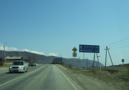 В поселке Култук, вот он внизу - вы сразу поймете что это он, когда Байкал начнет уходить впрво и назад от вас, стоит указатель на поворот в населенный пункт с неблагозвучным названием - Монды, вот как раз туда и надо поворачивать.