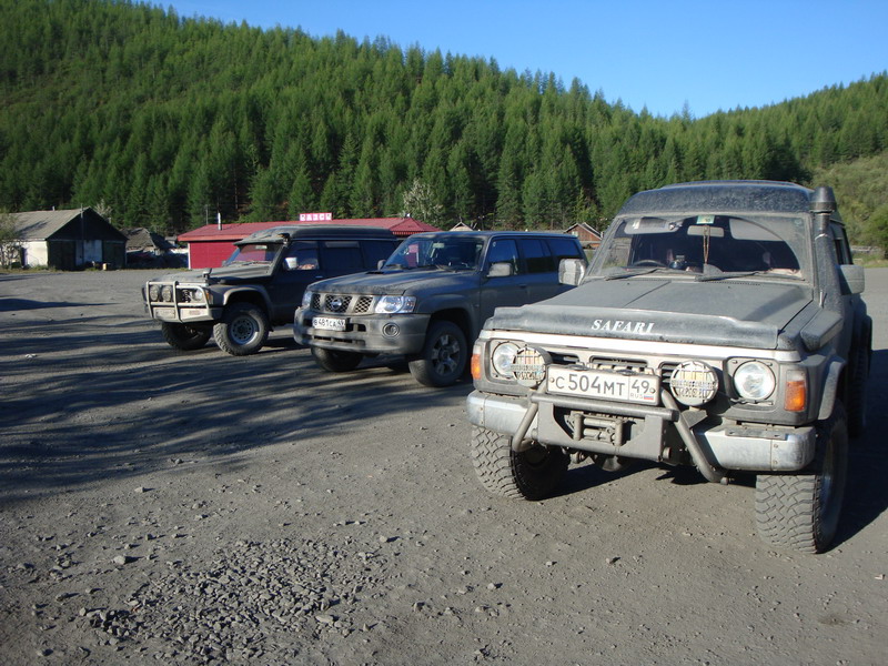 Выдвинулись из города в понедельник 12-ого июля в 6 утра, в составе 5ти человек на трех машинах: мой Сафарь, Патрол форумчанина D-imona и Сафарь форумчанина Zhikanа + 2 штурмана: Стас и Владимирыч. Сафари слегка подготовленные, а Патрол в полном стоке.
