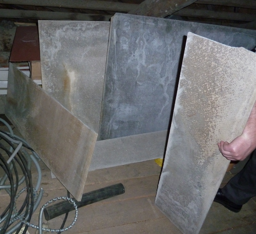 шифер 2 куска, примерно 1х1 м и ещё обезки 0,4х1м (должно подойти вместо асбестового листа)
