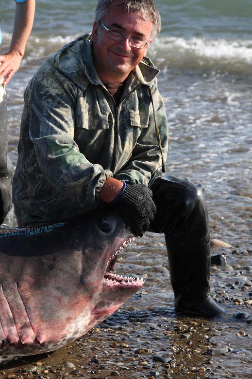 Господа, На Ойринской косе моим корешом была выловлена настоящая полярная акула. Длина - 2, 40. Вес пока неизвестен. Запуталась, бедолага.