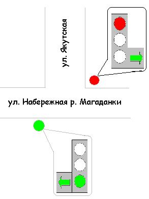 Такое же значение имеет зеленая стрелка в дополнительной секции. Выключенный сигнал дополнительной секции означает запрещение движения в направлении, регулируемом этой секцией.