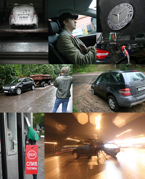 Что будет с этими мускулами и блёстками, когда настанет время лезть в грязь? Надеюсь, не понадобится бежать в ближайший населённый пункт за трактором. Тем более что оказавшийся в моих руках Mercedes ML350 не просто внедорожник, а внедорожник «особой серии» с пакетом для замызгивания Offroad Pro. В пакете обнаружилось несколько полезных вещичек. Усиленная защита моторного отсека и днища, возможность заблокировать (как вручную, так и автоматически) межосевой дифференциал и заднюю ось, подключаемая в движении 2-ступенчатая «раздатка». Далее в списке значатся пневмоподвеска Airmatic, позволяющая увеличить дорожный просвет с 20 до 29 сантиметров, и передний свес с увеличенным до 32 градусов углом въезда, что поможет сохранить в девственном состоянии дорогостоящий бампер. В общем, вся эта внедорожная атрибутика вполне выглядит грозным оружием покорителя дорог без дороги.Но постойте, а что же под капотом? Вдруг там окажется литровый карбюраторный мотор мощностью сил этак в 27? К счастью, нет — бензиновый агрегат V6 объёмом 3,5 литра. Силёнок достаточно — 272 «лошадки», крутящего момента тоже хватает — 350 Нм, которые достигаются в диапазоне от 2,5 до 4 тысяч оборотов в минуту. Все эти цифры позволяют мчаться (по асфальту, естественно) с максимальной скоростью 225 километров в час и разгоняться до «сотни» за 8,4 секунды. Но всё это — не без помощи 7-ступенчатой (7 ступеней для движения вперёд, и 2 — для езды задом) коробки 7G-Tronic. К чему тут две передачи для движения задним ходом? Вторая передача подключается в том случае, если автомобиль испытывает затруднения при трогании задом, например, на скользком покрытии.[