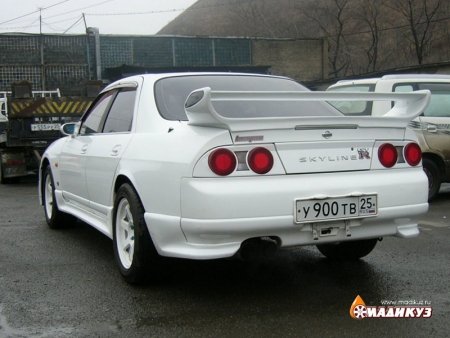 После долгой подготовки была поставлена вся передняя часть от 33GTRа. Пороги и задний спойлер были куплены от седана.
