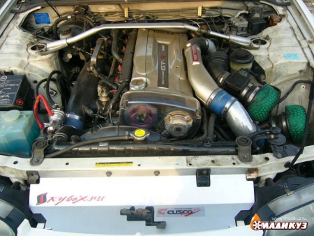 В данном конкретном случае мы пошли немного дальше. Наша машина имела от рождения мотор RB25DE, полный привод и механическую коробку. И идти по пути проторенному, т.е. репетировать 25-ку, не хотелось.