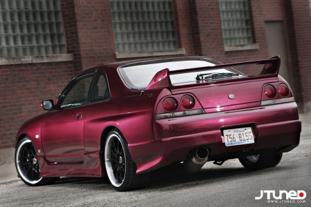Наш GT-R от носа до хвоста одет в полный боди-кит Do-Luck, который придает его внешнему виду неимоверную крутость. (Кстати, по неизвестной причине я не могу сдержать приступ головокружения каждый раз, когда вижу его огромный интеркулер, кажется, так и готовый пропылесосить все вокруг). После того, как все детали из стеклопластика были прикручены к кузову, и проверка показала, что все прикручено верно, кузов был полностью покрыт краской PPG. Из всех доступных цветов только один так и кричал, что его нужно выбрать - Magic Magenda. Да, вы верно прочли. А теперь попробуйте произнести это название три раза подряд, и чтобы без ошибок! Пурпурно-малиновый оттенок, получившийся в итоге, почти одинаков с тем, который носил название Maroon в то время, когда им красили кузова S14.