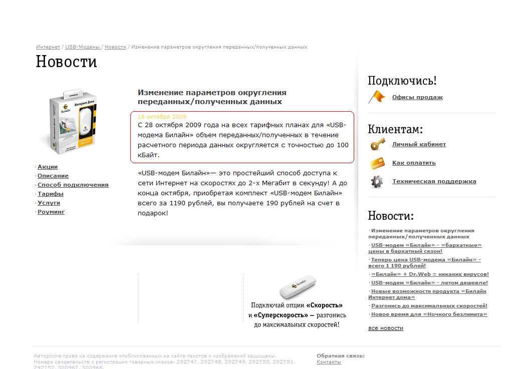 http://magadan.modem.beeline.ru/news/index...93-1c8d726cb5b4С 28 октября на тарифах, продаваемых с usb-модемами Билайна, порог тарификации меняется с 1 Кб до 100 Кбайт.